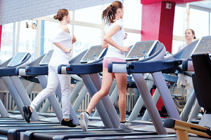 women running on treadmill